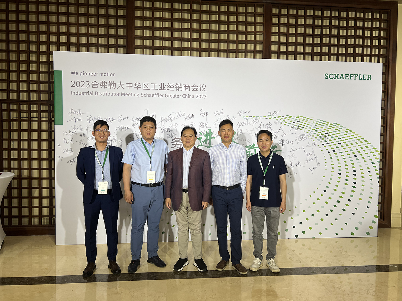 5月10日-12日,2023舍弗勒大中華區(qū)工業(yè)經(jīng)銷(xiāo)商會(huì)議在昆明圓滿(mǎn)召開(kāi)。本次大會(huì)以“務(wù)實(shí)進(jìn)取 穩(wěn)健前行”為主題,共話(huà)行業(yè)未來(lái),共謀合作發(fā)展。昂特科技應(yīng)邀出席,榮獲年度卓越經(jīng)銷(xiāo)商。公司董事長(zhǎng)鄧建英、總經(jīng)理鄧永開(kāi)、市場(chǎng)部總監(jiān)梁浩、 上海市場(chǎng)部經(jīng)理王浩參加活動(dòng)。
